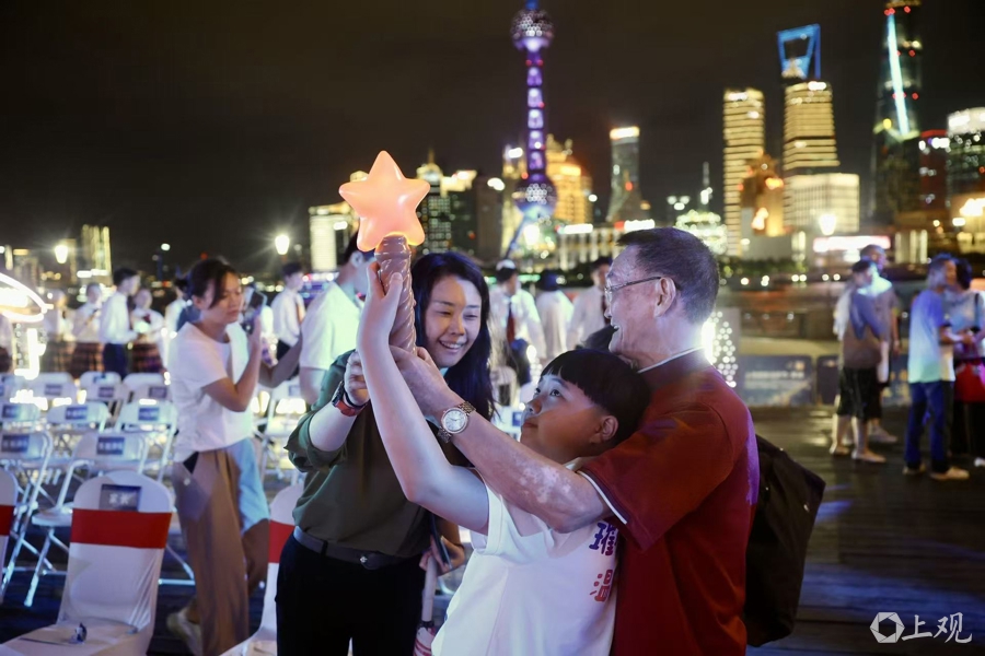 9月20日,上海国际光影节·黄浦活动启幕。仪式散场后,一张照片定格在本报摄影记者的镜头中:镜头下,一个八九岁的男孩手举着“星星棒”,仰望星空,满怀期待,他的身旁是红了眼眶的家长。
