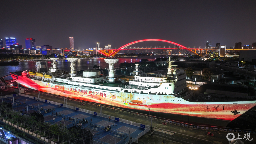流光溢彩的光影投射在“远望1”号191米的船体上,光的笔触如灵动的画师,细致勾勒出船体上的每一处细节,一个以冰川纪元为起点的故事被娓娓道来。社区居民薛阿姨与老伴看得津津有味。“我们从家走过来十分钟。平时,黄浦滨江没这么热闹。这几天,光影节活动在这里举办,每晚都有‘新节目’。”看看灯光秀、逛逛市集,再看场露天电影,薛阿姨与老伴不亦乐乎。