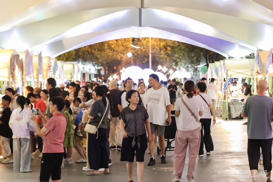 “我们店铺的招牌是砂锅煮,现场品尝体验会最好。但因为是市集摊位,不方便操作,我们就选择了‘麻辣拌’的形式:食材煮好后直接浇酱,类似‘关东煮’,客人可自选食材,更适合市集场景。”赵鑫说,没想到,在现场,这种形式特别受欢迎。但更让她高兴的是,很多消费者对他们的产品口味很满意,和她要了微信和地址,说以后会去店内品尝。“我们是一家新开店铺,第一次参加光影节·黄浦活动,就是想借这个机会做个宣传,让更多人知道我们的店铺与品牌。我感觉这个目的达到了,对在黄浦奋斗,我更加有信心了。”赵鑫说。