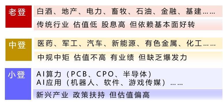 最典型的或许就是以人工智能AI为首的“小登”和以白酒、地产等顺周期为代表的“老登”的巨大对比。